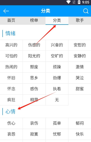 3、平台将所有歌曲都根据不同的类型进行了分类处理