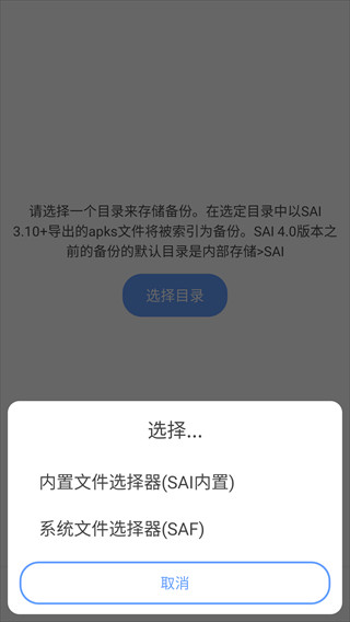 长按“选择”使用系统文件选择器(SAF),而不是SAI内置选择器。
