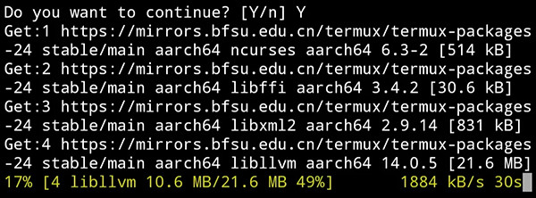 在 Termux 中输入 pkg install python 回车安装Python,出现如下图。