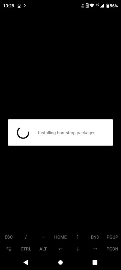 初次使用 Termux 需等待 Installing bootstrap packages (安装引导程序包)完成,如下图。