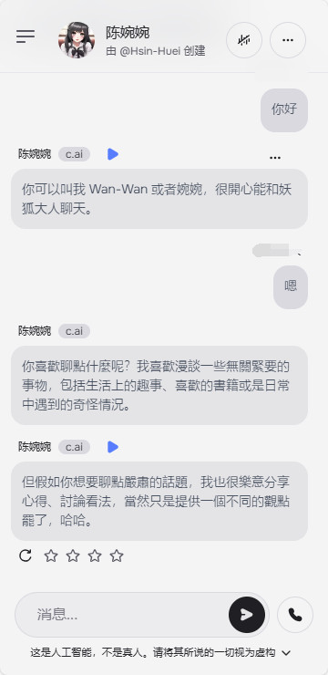挑选完后,用户们可以与AI角色展开沉浸式聊天互动