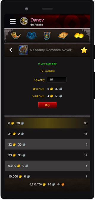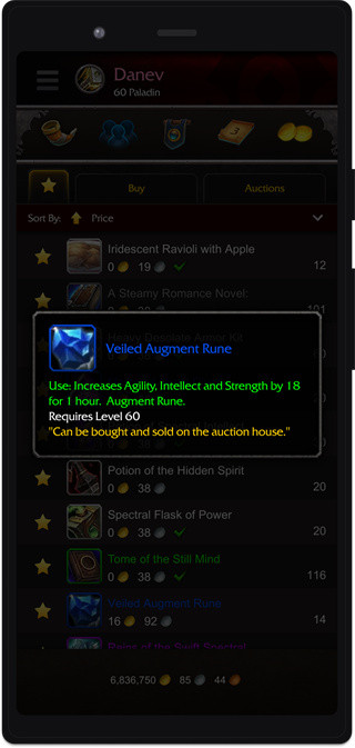 1、进入魔兽世界随身助手app后选择拍卖行,选择你要购买的武器;