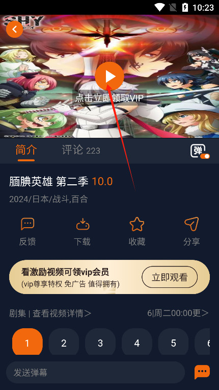 4、这里我们点击领取vip,其实就是看一个广告,看了就能免费播放了