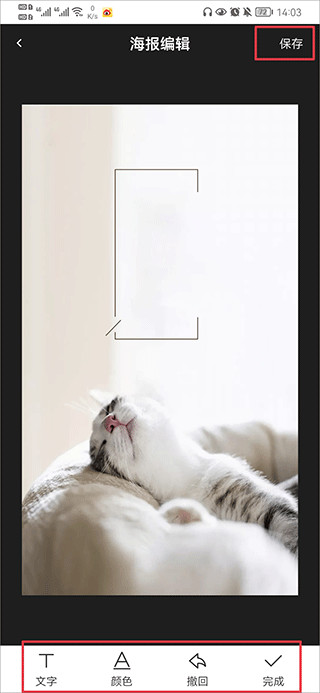 3、最后使用下方编辑工具将海报制作完成后,并点击保存就可以下载到相册了